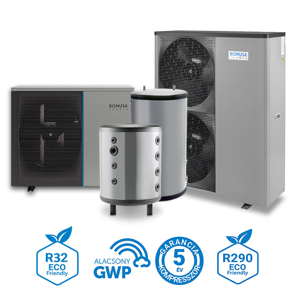 A Domusa Dual Clima levegő-víz hőszivattyúkhoz mindent házon belül lehet megvásárolni, nem kell külsős megoldásokat használni (mert nincs saját tartálya, szelepe, vagy akármilye)! A Domusa egyedi BTS fagyvédelmi rendszert fejlesztett ki, így biztosítva a Monoblokk hőszivattyúk rettegett fagyvédelmét, vagy például a kis helyet foglaló Fusion Trio, vagy BT Trio tartály amely biztosítja a hűtő fűtő puffert, és a hmv rendszer 2-in-1. Több különböző kulcsrakész megoldást tudunk kínálni az épületszerkezet, és a kiépített hőleadókhoz igazítva. Fontos, hogy mindezt kulcsrakész csomagban teljes telepítéssel együtt valósítjuk meg!